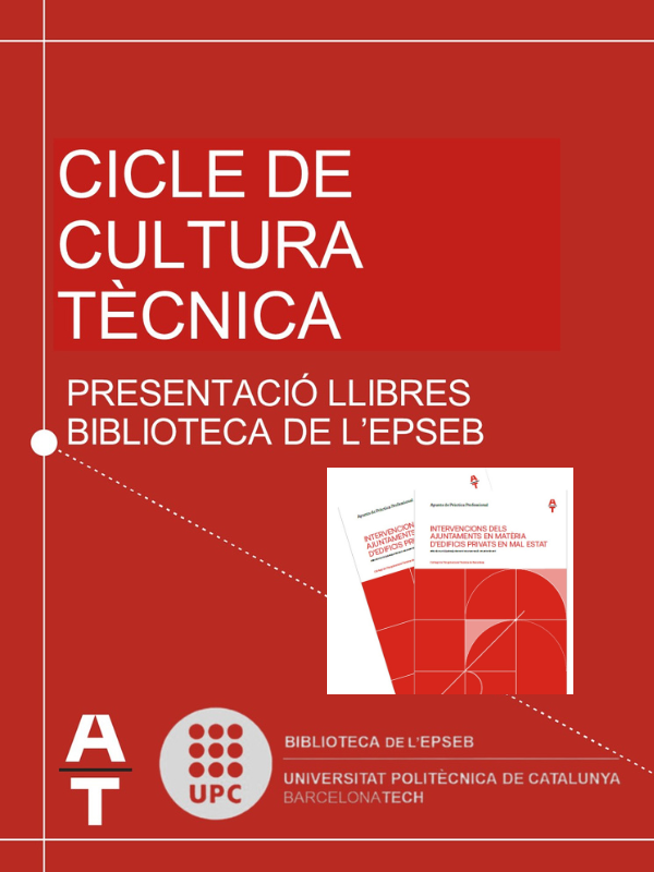 El 29 de setembre de 2025, a les 16:30 h, la Biblioteca de l’EPSEB (Gregorio Marañón 50, Barcelona) acollirà la presentació del manual Intervencions dels ajuntaments en matèria d’edificis privats en mal estat, una nova Apunt de pràctica professional impulsada pel Cateb.